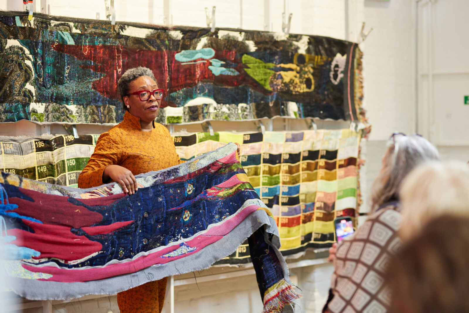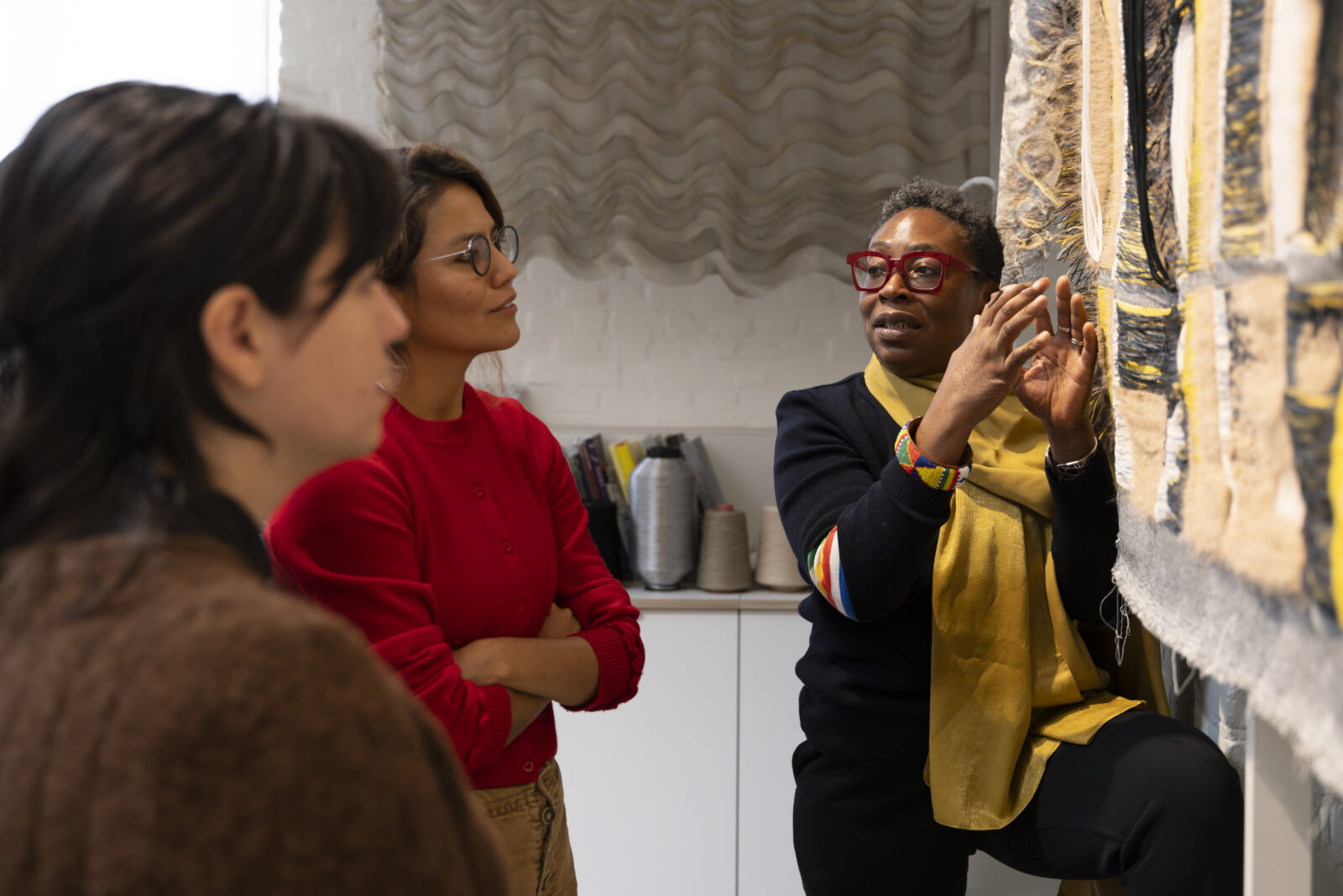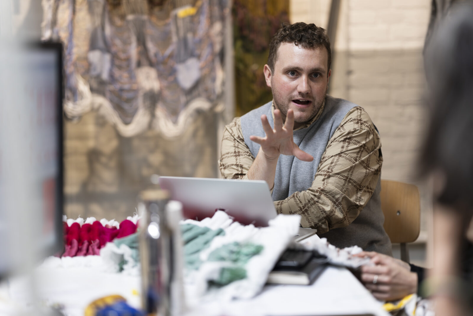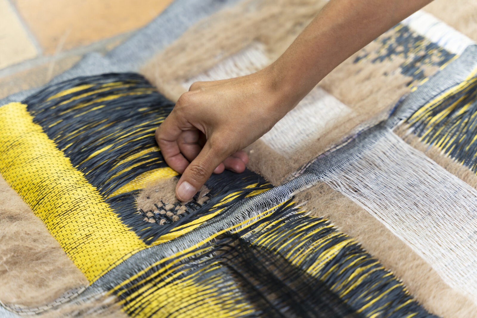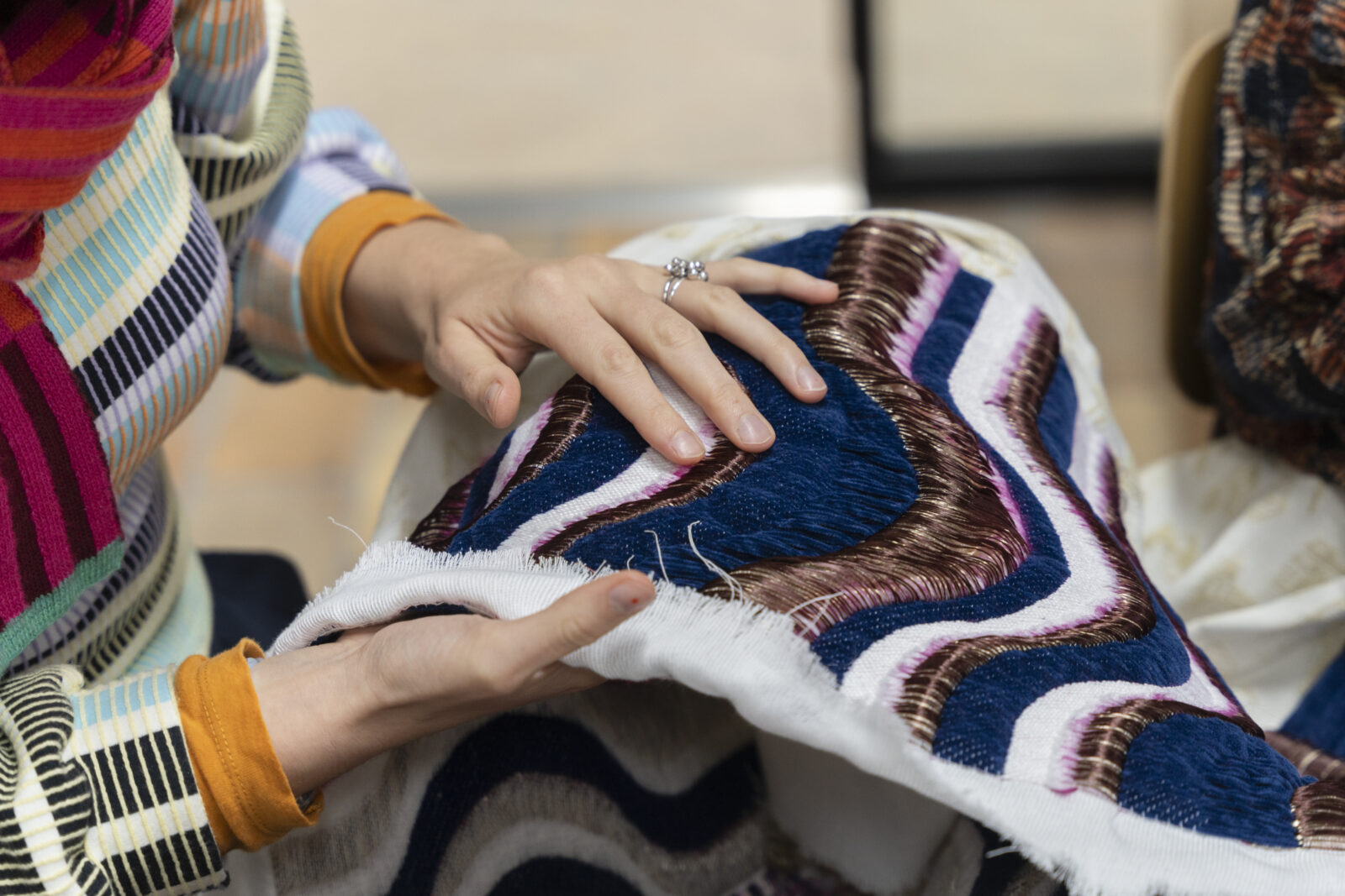 Na een maand van voorbereiding en research kregen zij de unieke kans om samen met de productontwikkelaars te experimenteren op de machines in het lab. Ze werden daarin begeleid door drie mentoren: kunstenaar Otobong Nkanga, Kvadrat’s designdirecteur Stine Find Osther, en Kvadrat-ontwerper Nina Lolle. Er is ter plekke veel ontwerpend onderzoek gedaan naar het aanbrengen van gelaagdheid, structuur, contrast en handmatige interventies. Op 2 december vond de eindpresentatie plaats in het TextielMuseum, tijdens het symposium Threads of Innovation. In het voorjaar van 2025 worden het proces en de uitkomsten aan het publiek getoond op het Young Talent Platform.