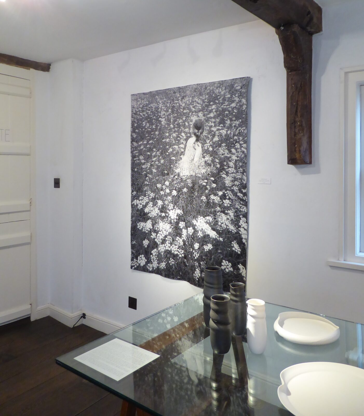 Ainsley Hillard vraagt aandacht voor het verdwijnen van inheemse planten in het landschap van Zuid-Wales. Hillard fotografeert de wilde bloemenweiden, rivieren en bossen van Carmarthenshire en zet haar dromerige zwart-wit foto’s om in geweven wandkleden. Haar kleden zijn in het verleden al meermaals bekroond. In 2024 ontwikkelde ze samen met productontwikkelaar Marjan van Oeffelt vier katoenen kleden in het TextielLab: Hawthorn, Wood anemone, Whorled caraway and Whispering meadows.