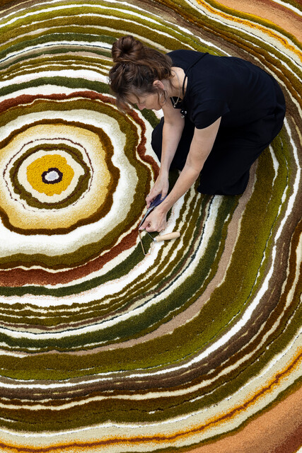 Begin 2024 ging Freijsen opnieuw in het lab aan de slag voor Artis, dit keer met een vloerkleed voor het Groote Museum. Voor het eerst in zestien jaar verbeeldde het tuftwerk een heel ander materiaal: de dwarsdoorsnede van een boom. Freijsen was gefascineerd door een in het Groote Museum tentoongestelde houten funderingspaal, die het museum ruim 160 jaar heeft gedragen als onzichtbare kracht. Samen met Karen Zeedijk begon ze aan de vertaling van de veelzeggende jaarringen naar een wollen kleed dat zij zelf omschreef als ‘een zachte plek van aandacht’.