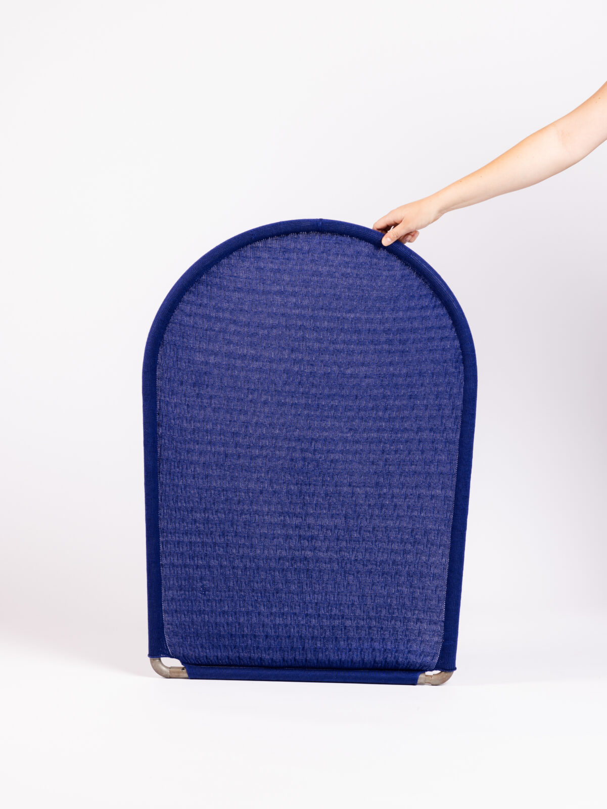 Hoe kun je een 3D-gebreide vorm omzetten in een ‘fully fashioned’ meubel, waar geen confectie meer voor nodig is? Als stagiair in het TextielLab kreeg Lynn Biesmans een aantal ontwikkeldagen in het lab voor haar eigen experimenten op dit vlak. Onder de hoede van productontwikkelaar Sarena Huizinga startte ze een vormbrei-onderzoek op de vlakbreimachine. In het lab maakte zij de eerste proeven voor Fully Fashioned Furniture, eerst met een combinatie van wol en smeltgaren dat op de machine werd opgevuld met restanten polyester, daarna met Tencel. Dit laatste materiaal is gemaakt van volledig natuurlijke vezels die milieuvriendelijk geproduceerd worden, en sluit dus goed aan bij de verduurzamingsslag die Biesmans beoogt.