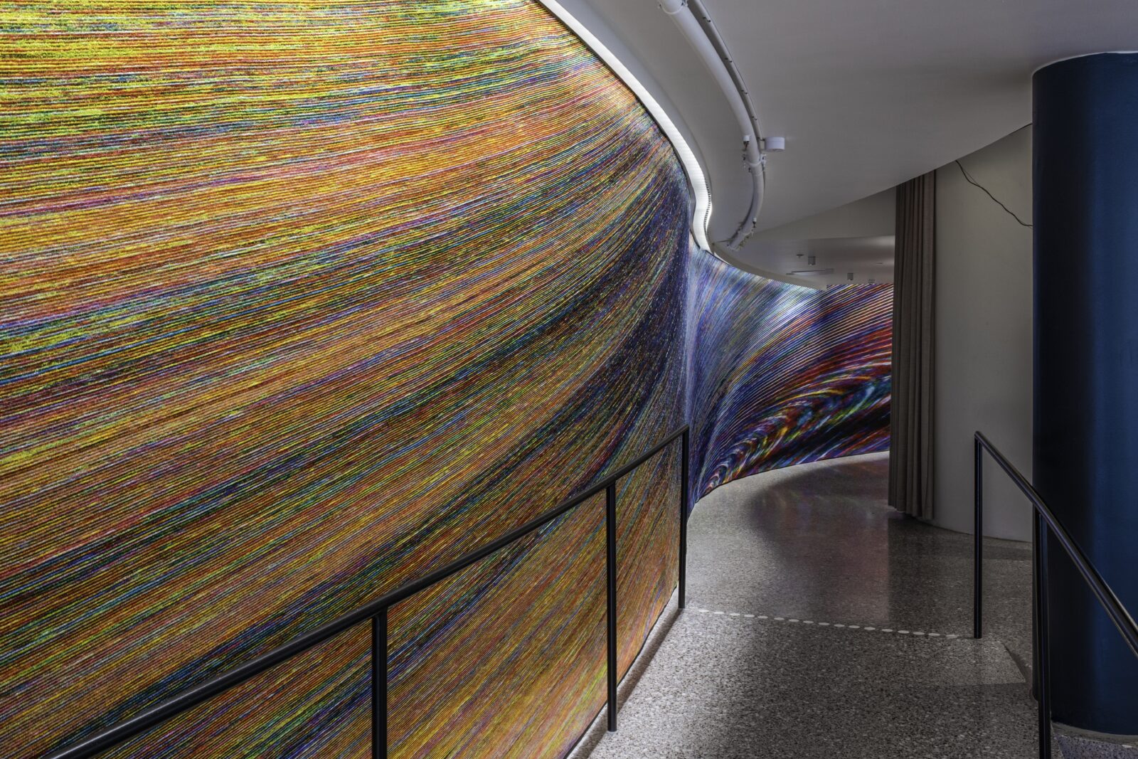 Miriam Bäckström (Swedish, born 1967). Perfect Storm, 2024. Jacquard tapestry, Trevira CS on Trevira CS warp. 292 × 3000 cm. Lund City Hall, Lund, Sweden. © Miriam Bäckström