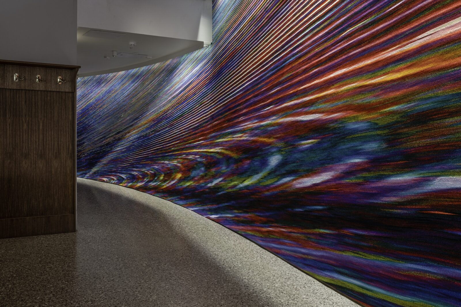 Miriam Bäckström (Swedish, born 1967). Origin, 2024. Jacquard tapestry, Trevira CA on Trevira CS warp. 280 x 3200 cm). Lund City Hall. © Miriam Bäckström. Afbeelding door Studio Miriam Bäckström