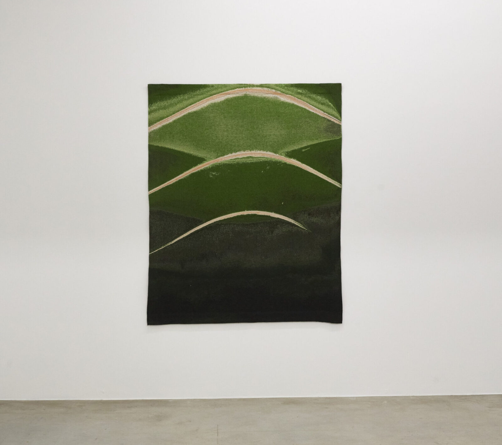 Beeldend kunstenaar Nathalie Brans werkt voornamelijk met foto’s, papier en textiel, vaak in combinatie met elkaar. De zon, de maan en de kosmos zijn centrale thema’s in haar werk, en licht is wat alles met elkaar verbindt. Voor Horizon, een geweven wandkleed van 150 bij 180 cm groot, heeft Brans gewerkt met pinhole-fotografie. De oorsprong van deze grofkorrelige foto’s of ‘solargraphs’, is nietig: het beeld wordt door een piepklein gaatje in een blikje geprojecteerd en vastgelegd.