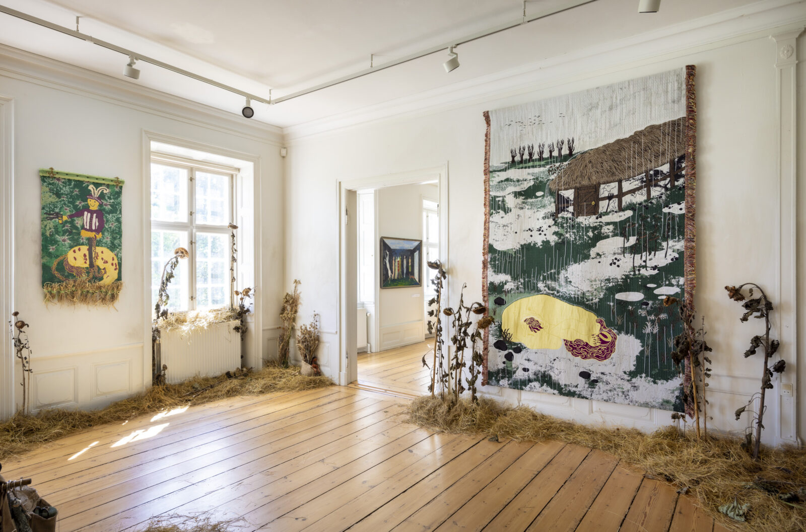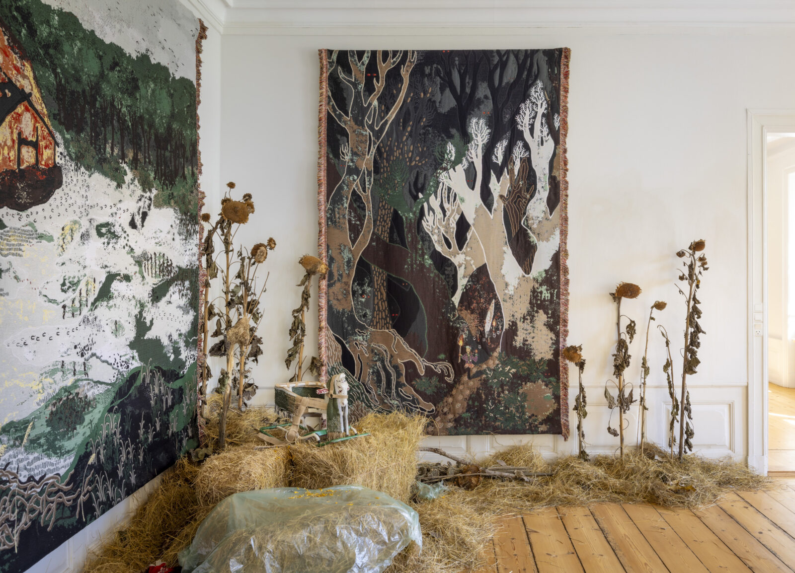 In het lab werd een kleuren- en materialenpalet gemaakt voor de hele serie, die bestaat uit vier wandkleden die op de 170 cm machine zijn geweven en één groter kleed dat op de 350 cm machine is gerealiseerd. Het beeld is in alle kleden opgebouwd uit twaalf kleuren: tien matte katoenen garens en twee inslagen van acryl. Op de expositie in Denemarken waren de wandkleden te zien in een installatie van uitgebloeide zonnebloemen, stro en afgedankte hobbelpaarden.