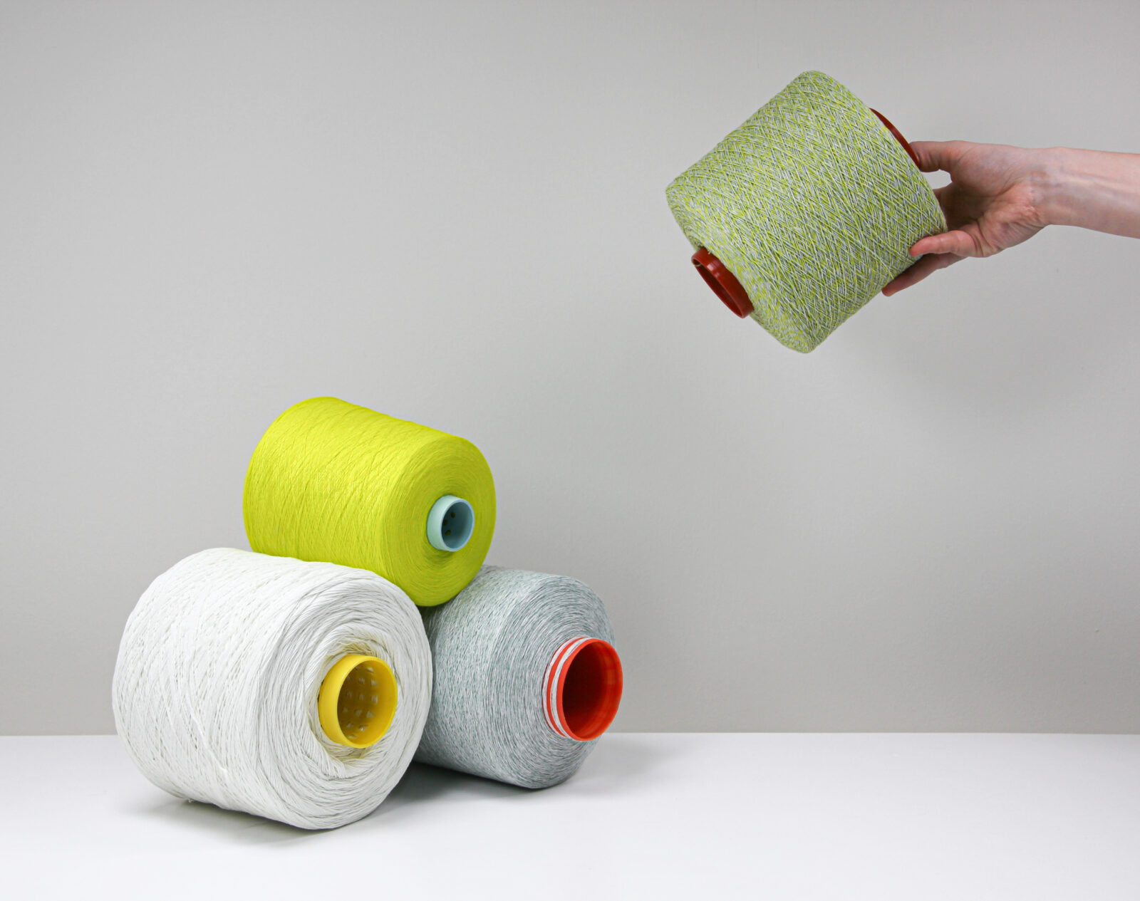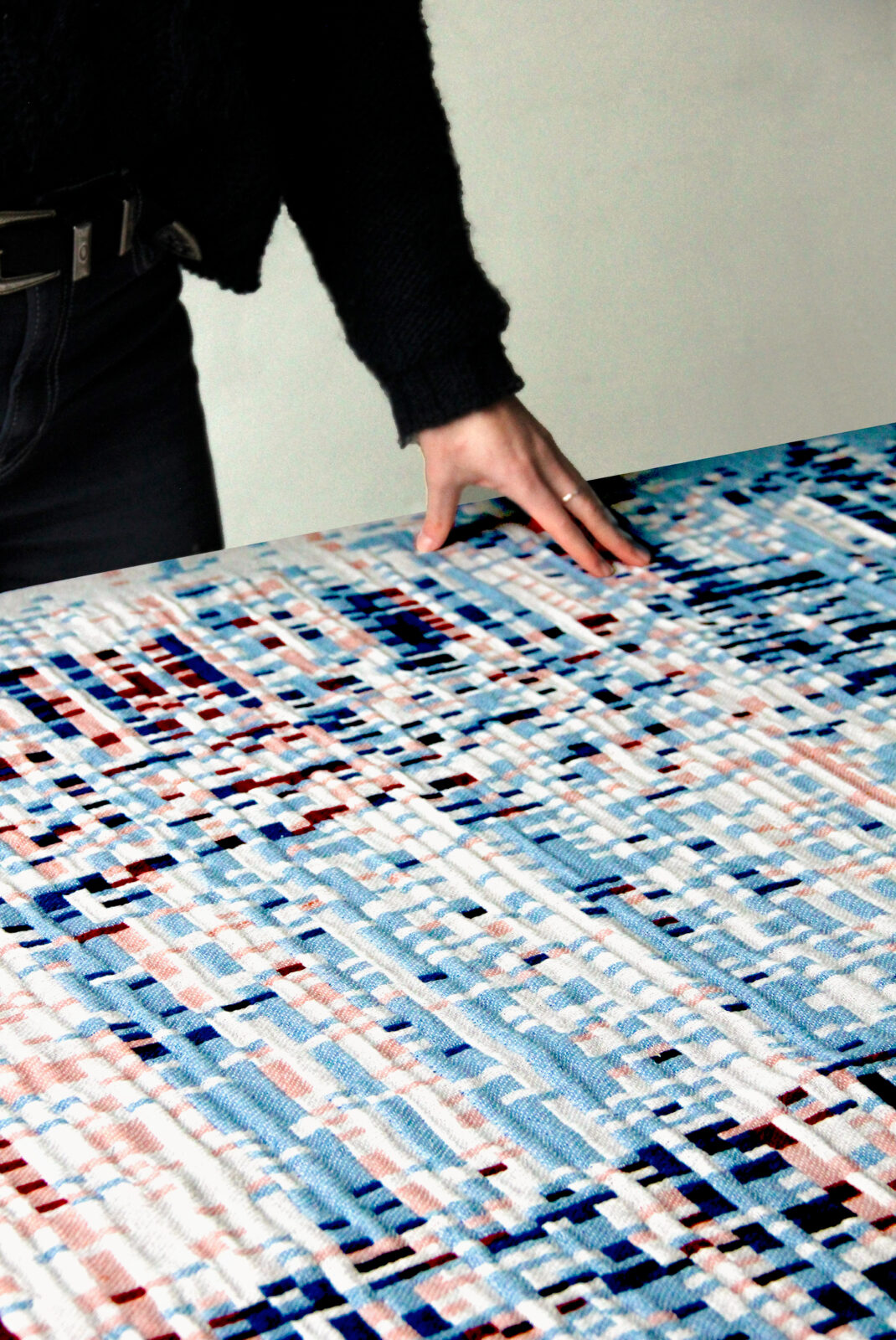 In de Climate Action Collection van Studio Samira Boon krijgen afgedankte stoffen een nieuw leven. Dit kleurrijke wandtapijt is gebaseerd op Show your Stripes, dat de veranderende temperaturen over de hele wereld weergeeft en oproept tot actie tegen de opwarming van de aarde. Het is geweven op een biologische katoenen ketting met gerecycled garen van Wolkat, een Nederlands bedrijf dat zich bezighoudt met de circulaire verwerking van afgedankt textiel.