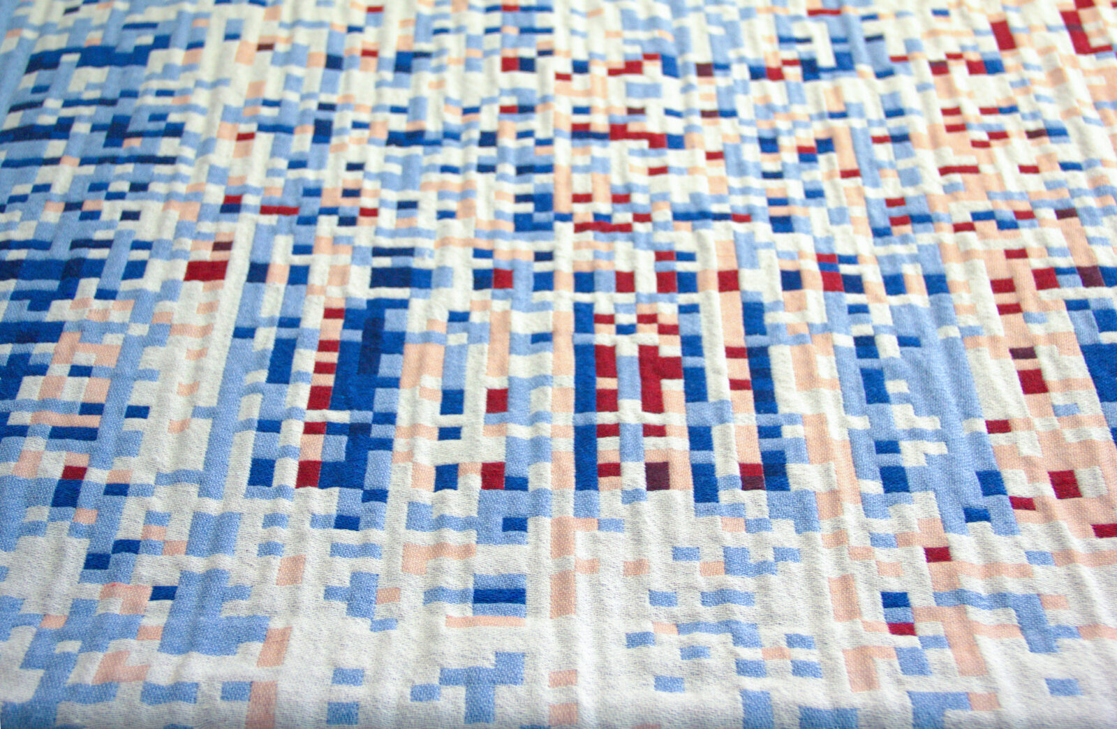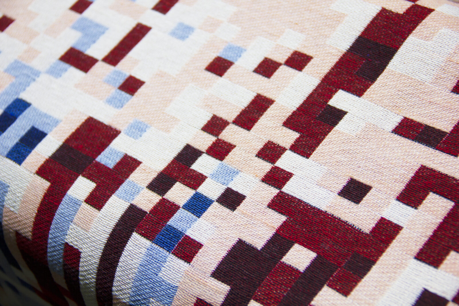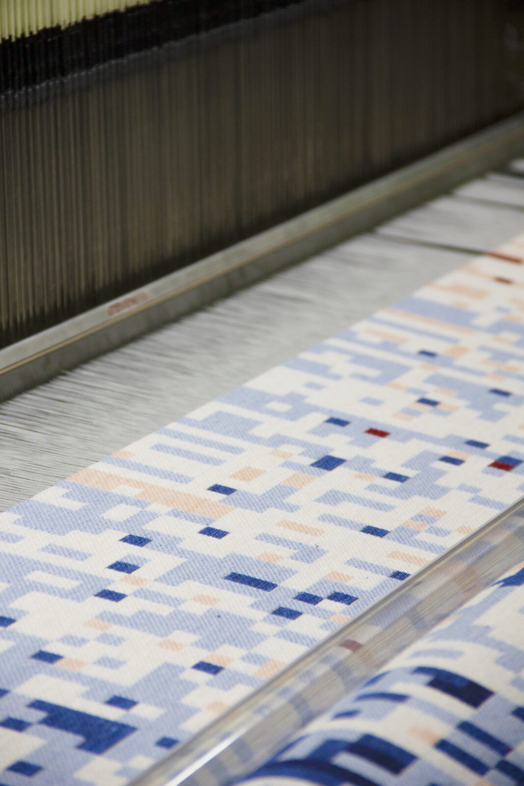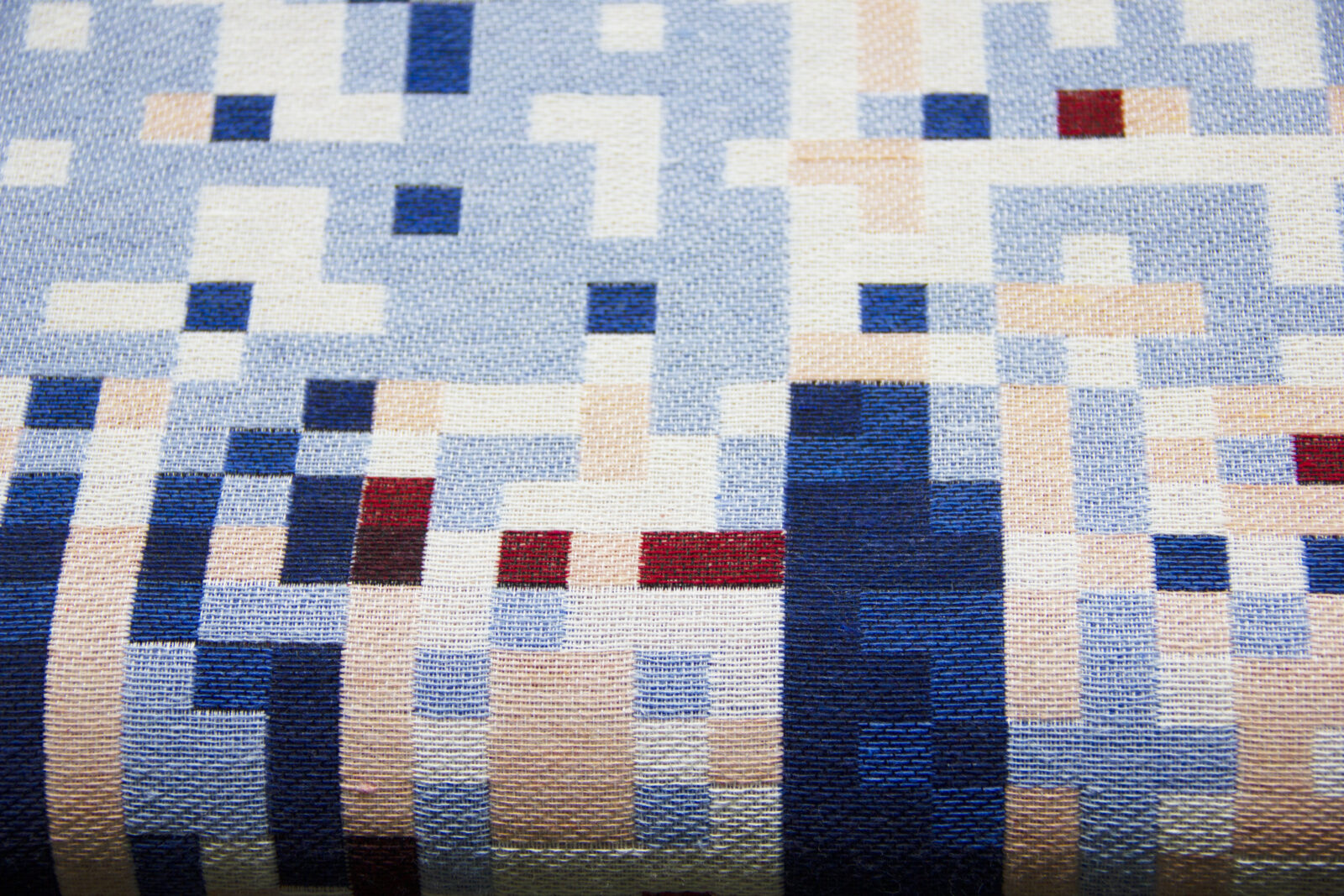 De uitdaging van werken met dit garen is dat het wisselt in dikte. Dat maakt het lastig om er een gelijkmatig weefsel mee te creëren. Het wandkleed is geweven met een zwart-witte ketting om de kleuren intenser te maken. De witte kettingdraden zijn gebruikt voor de lichte kleuren en de zwarte kettingdraden zijn gebruikt voor de donkere kleuren.