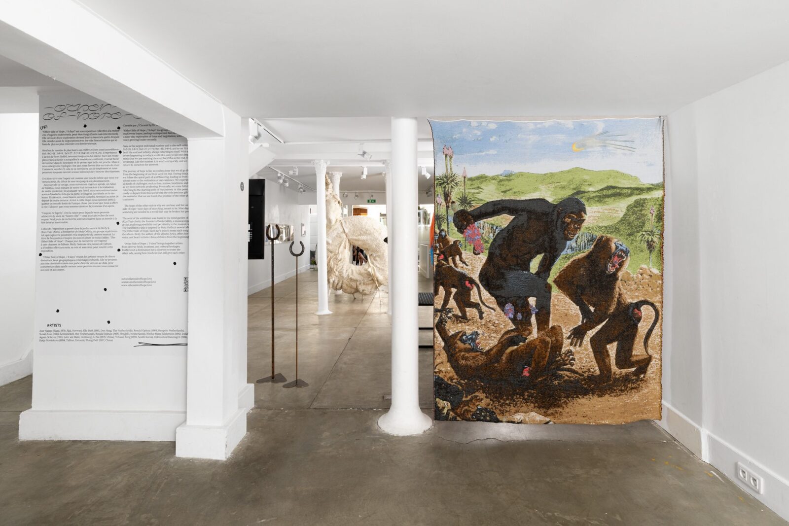 Bij het borduurcluster werden nieuwe elementen toegevoegd met restanten zijdegaren dat gebruikt werd voor de gordijnen van de koninklijke familie. Op het originele wandkleed valt de prehistorische mensachtige Australopithecus een aantal bavianen aan met een bot en een steen. In de bijgewerkte versie zijn deze wapens vervangen door trossen gefermenteerde druiven. Boven deze scène is een geborduurde komeet toegevoegd. Terwijl kometen door de geschiedenis heen vaak als onheilsbrengers worden gezien, worden ze in de wijnwereld verwelkomd als een positief teken. Kooi maakt er een hoopvol statement mee voor het Franse wijnseizoen van 2061 – dan wordt de komeet Halley hier weer verwacht.